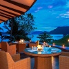 Вилла с 1-й спальней: двуспальная кровать, ванная комната с ванной и душевой кабиной, отдельная гостиная, обеденная зона (СВЧ-печь, кофеварка, чайник), меблированная терраса (зонты, шезлонги), душ на открытом воздухе, частный бассейн, фронтальный вид на море;
