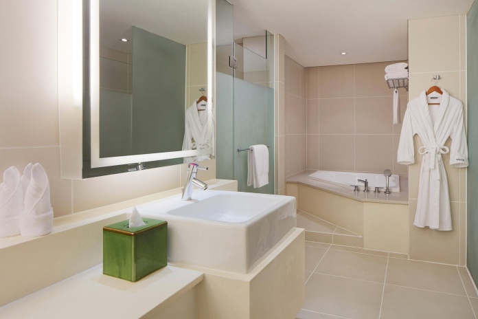 В номерах: Wi-Fi, кондиционер, LED-телевизор с кабельными каналами, телефон, сейф, халат, тапочки, бесплатные банно-косметические принадлежности, косметическое зеркало с увеличением, фен, ежедневная бесплатная бутилированная питьевая вода, кофемашина, электрочайник, принадлежности для чая/кофе, мини-бар (платно), утюг и гладильная доска, письменный/рабочий стол.