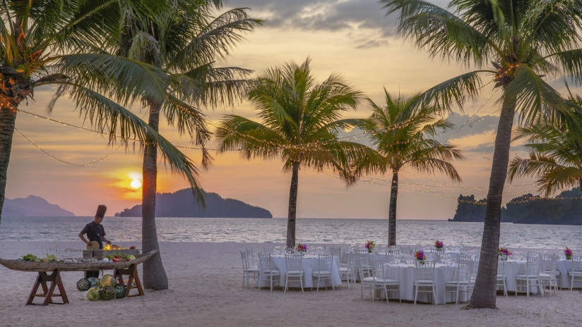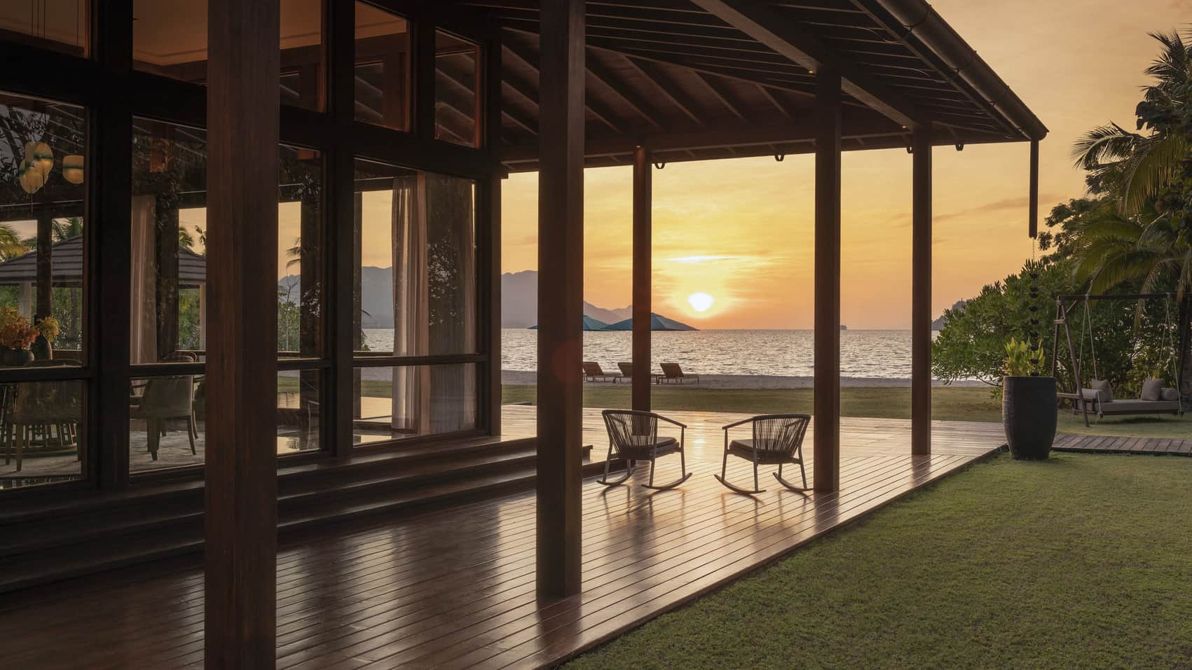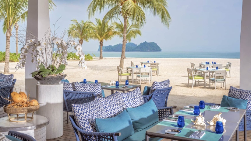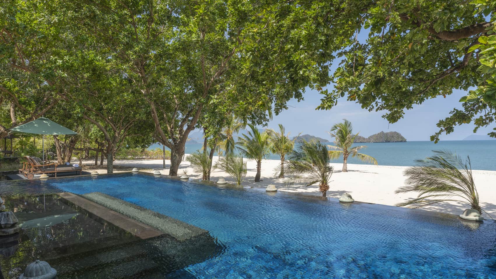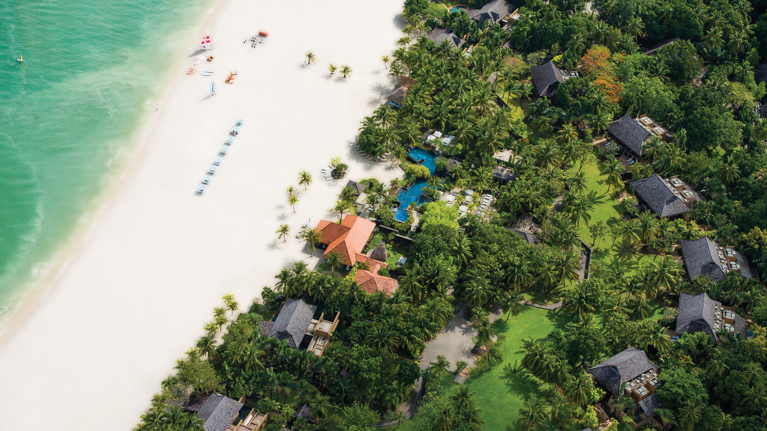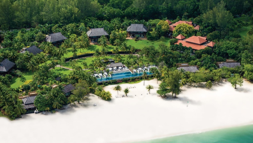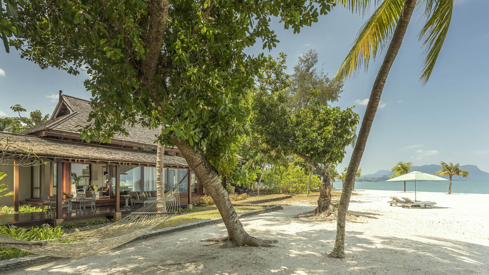 Пляжная вилла c 2-мя спальнями: в главной спальне – двуспальная кровать, собственная ванная комната с ванной, душевой кабиной, гардеробной и тропический душ на открытом воздухе; в гостевой спальне – двуспальная кровать, гостевая ванная комнат с душевой кабиной, гостиная с обеденной зоной на 6 персон, меблированная терраса с обеденной зоной на 6 персон, частный бассейн (12 м²), сад, шезлонги, пляжный гамак, выход на пляж, вид на море; привилегии для гостей*, план номера;
