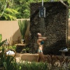 Номер на 2 этаже двухэтажного корпуса: 1 двуспальная кровать, кушетка, гостевой уголок, ванная комната с душевой кабиной, ванна и душ на открытом воздухе, меблированный балкон с обеденной зоной и кушеткой, вид на сад, план номера;