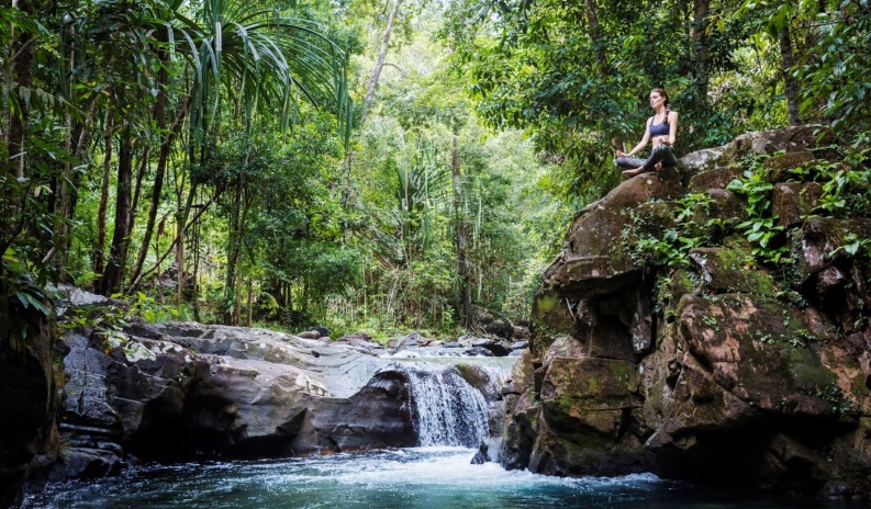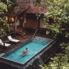 Уединенные виллы** на сваях в самом центре тропического леса, у ручья, открытая планировка: двуспальная кровать king-size или 2 односпальные кровати, письменный стол, туалетный столик, гостиная зона с диваном, просторная ванная комната с душевой кабиной, ванной, двойной раковиной и гардеробными зонами, пополняемый мини-бар (за исключением снэков и алкогольных напитков), меблированный балкон, частный бассейн (длина 7,6 м), расширенная терраса с открытой зоной отдыха с шезлонгами, вид на тропический лес, полная приватность идеально подходит для молодоженов, план виллы;
