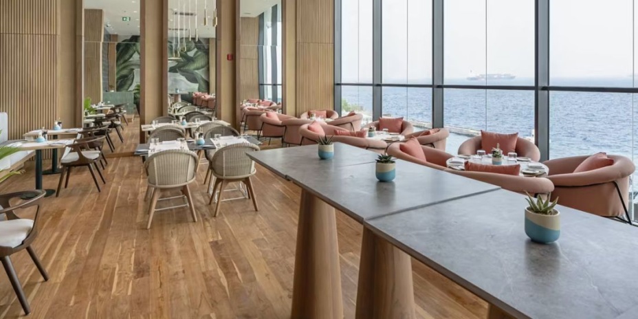 Для гостей доступны три ресторана и снэк-бар, шиша-бар, спа-центр, бассейн на первой линии океана и тренажёрный зал с панорамным видом.