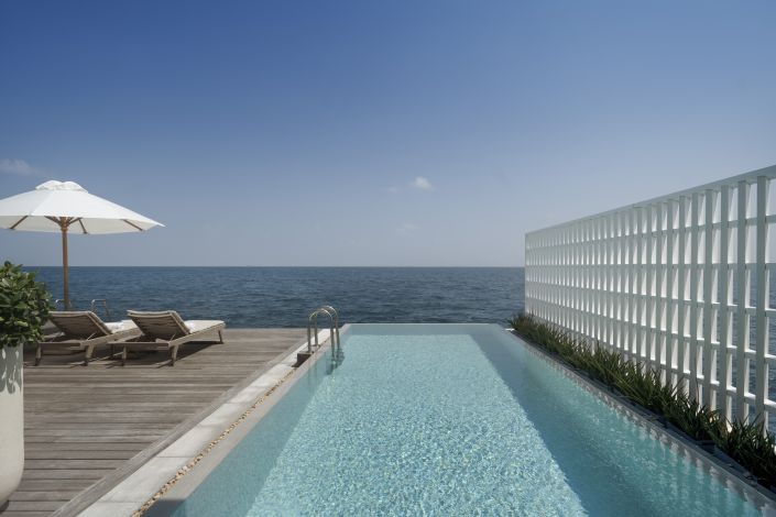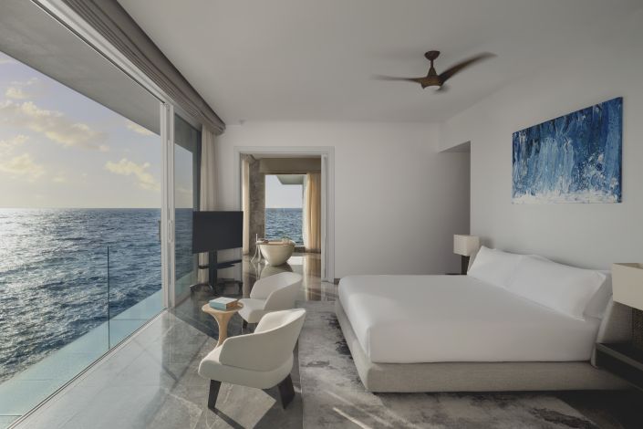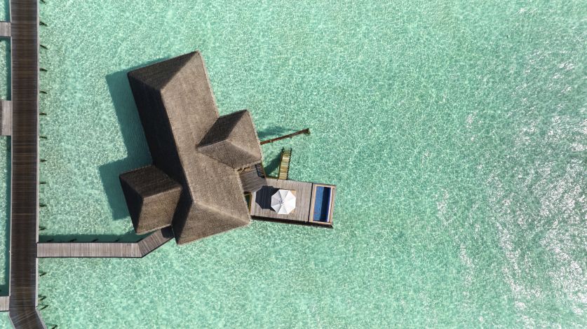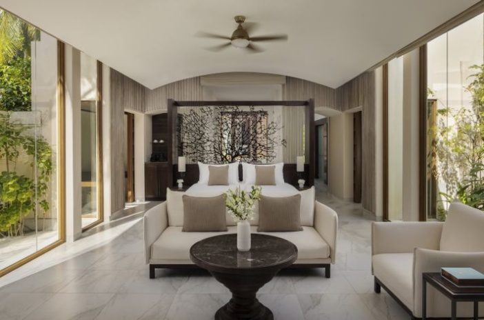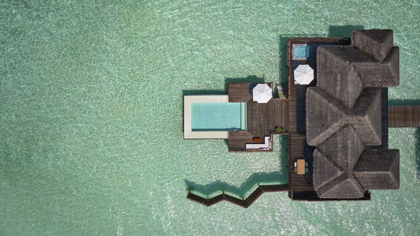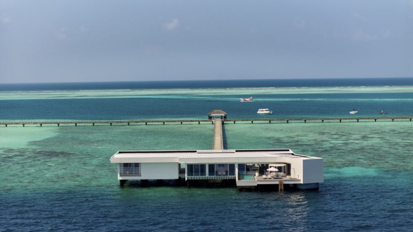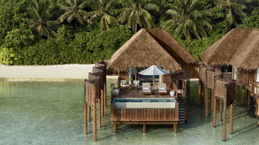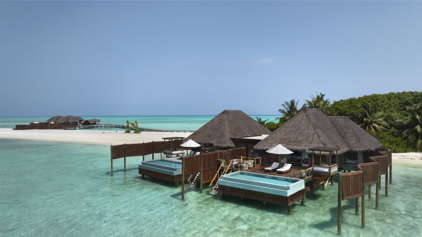 Виллы на острове Рангали-Финолу – архитектурный дизайн сочетает внутренние и внешние пространства, предлагая сады, частные бассейны и прямой выход к Индийскому океану.