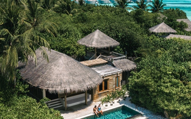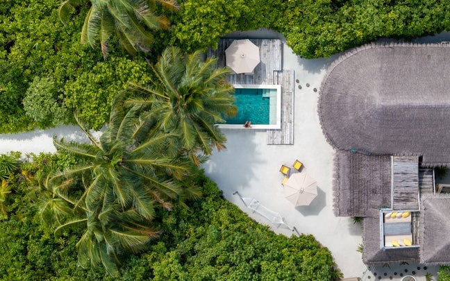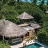 Пляжные виллы расположены на океанской стороне острова, 2 спальни: главная с двуспальной кроватью king-size или 2 односпальными и детская, душ под открытым небом, 2 ванные комнаты, терраса, частный бассейн, терраса на верхнем уровне с видом на океан, прямой выход на пляж, см.план номера. Дополнительно: бутылка просекко по прибытии, приветственный комплимент, кофемашина Nespresso, именные бирки на велосипеды, бесплатный завтрак с доставкой в виллу;