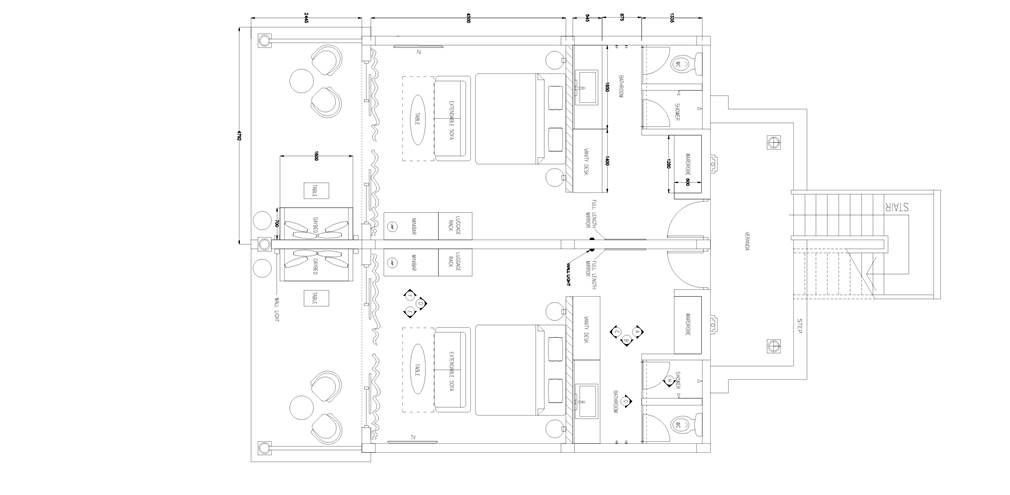 Расположены в двухэтажных павильонах с четырьмя номерами в каждом. Номера на первом этаже —  смежные номера, где по запросу возможны две односпальные кровати; на верхнем этаже — с двуспальными кроватями king-size, ванная комната с душем, балкон или терраса, вид на восход солнца, доступ к бассейну для гостей номеров Beach Pavilion (длина бассейна – 135 м). Обращены к лагуне и имеют прямой доступ к пляжу, план номера, новинка 2025 года;