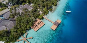 Водные виллы, 2 спальни: в одной двуспальная кровать king-size и ванна, в другой: 2 раздельные кровати queen, дополнительное место: раскладная кровать (по запросу), окна от пола до потолка, отдельная гостиная комната с диваном, с мини-кухней и обеденным столом на 6 человек, 2 ванные комнаты, терраса с частным 12 метровым бассейном infinity, лаунж-шезлонги на террасе, панорамный вид на океан, лестница ведущая в океан, план номера, см.виртуальный план номера;
