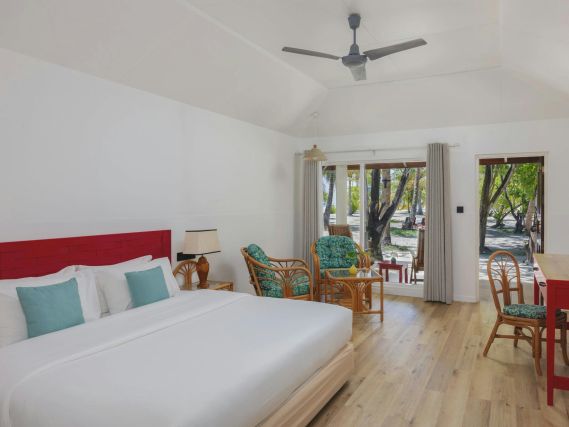 Расположены в самом сердце острова, на второй линии от пляжа, в блоках на 4 номера, двуспальная кровать, диван-кушетка, ванная комната с ванной и душем, терраса, вид на сад, план номера, реновация 2018 год;