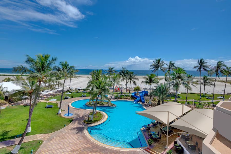 Hilton Salalah Resort — современный пляжный курорт на побережье Индийского океана в Салале, сочетающий комфорт, развитую инфраструктуру и удобное расположение рядом с центром города и аэропортом. Отель предлагает просторные номера с видом на море или сад, частный песчаный пляж, бассейн с водной горкой, рестораны международной и ближневосточной кухни, теннисные корты, детский клуб и сезонный дайвинг-центр.