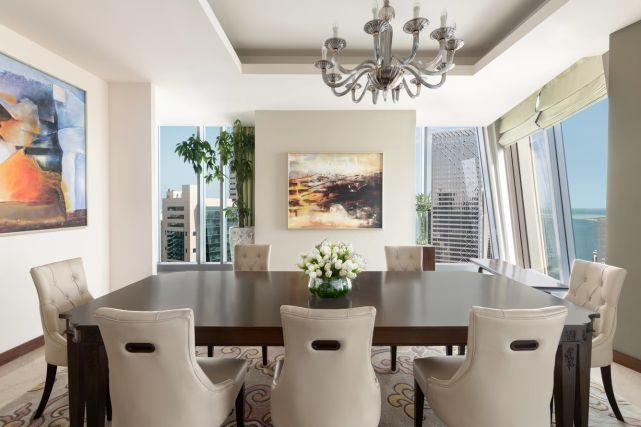 3 спальни с двуспальными кроватями king-size, 4 ванные комнаты, гостевой туалет, отдельная гостиная комната, обеденная зона, полностью оборудованная кухня, привилегии клуба Executive lounge access.