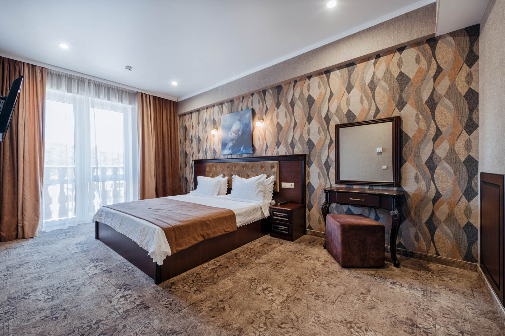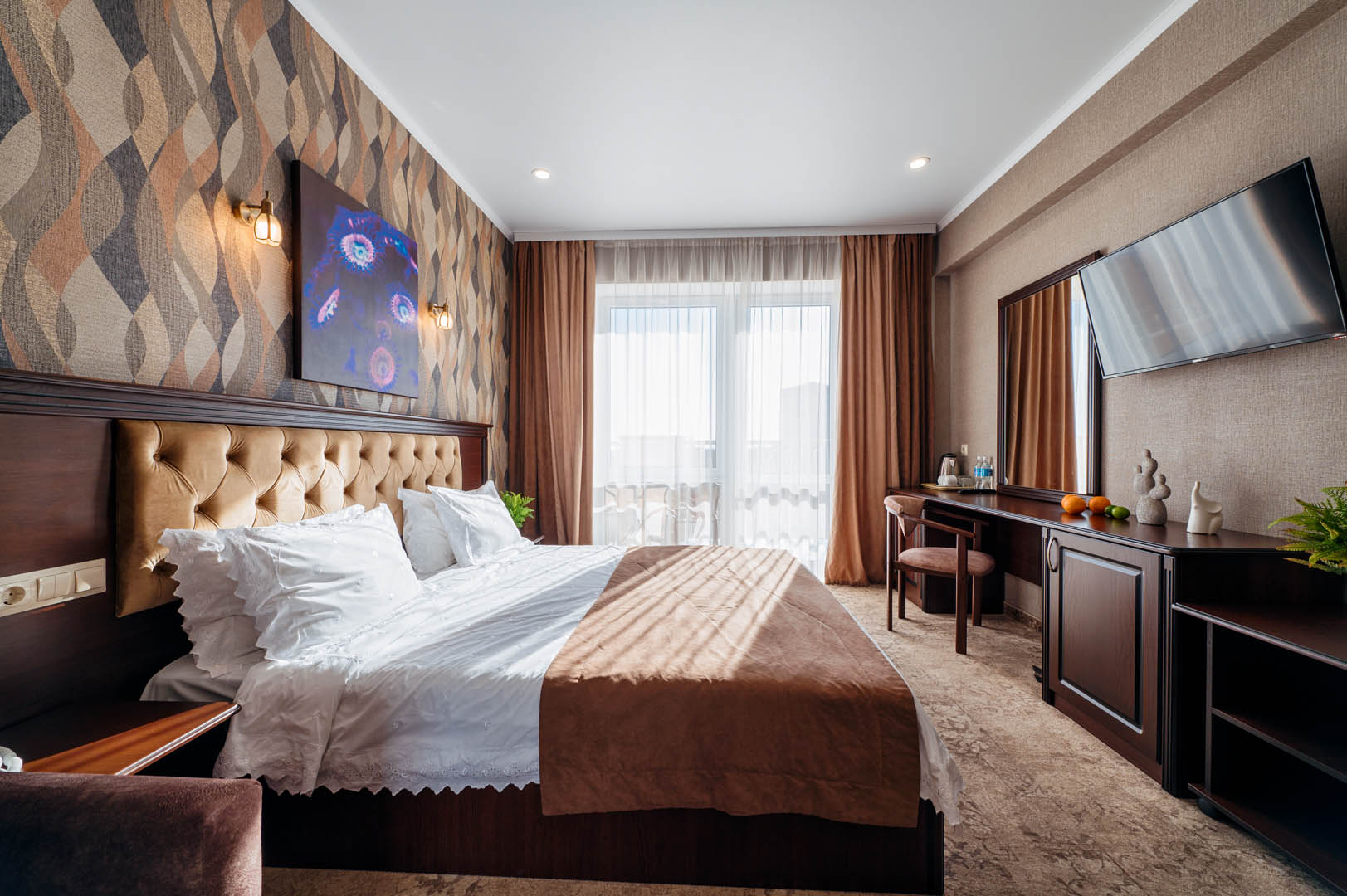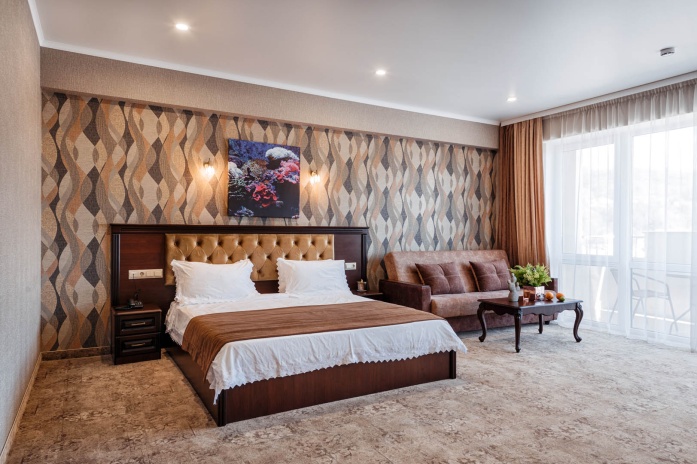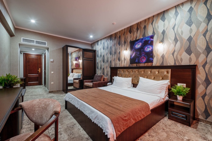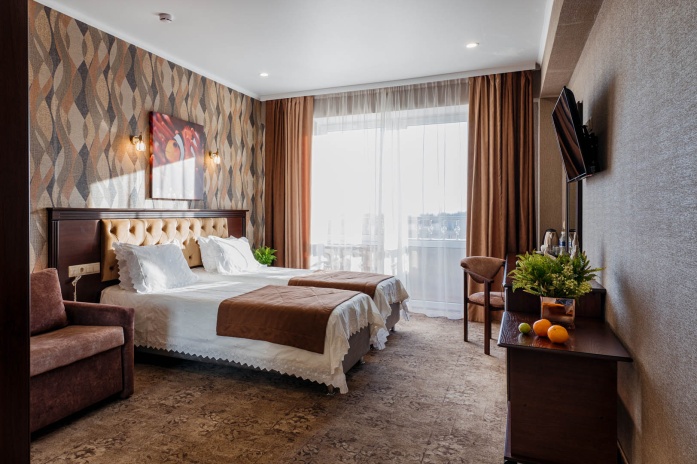 В просторных стильных номерах есть балкон, кондиционер, сейф и утюг.