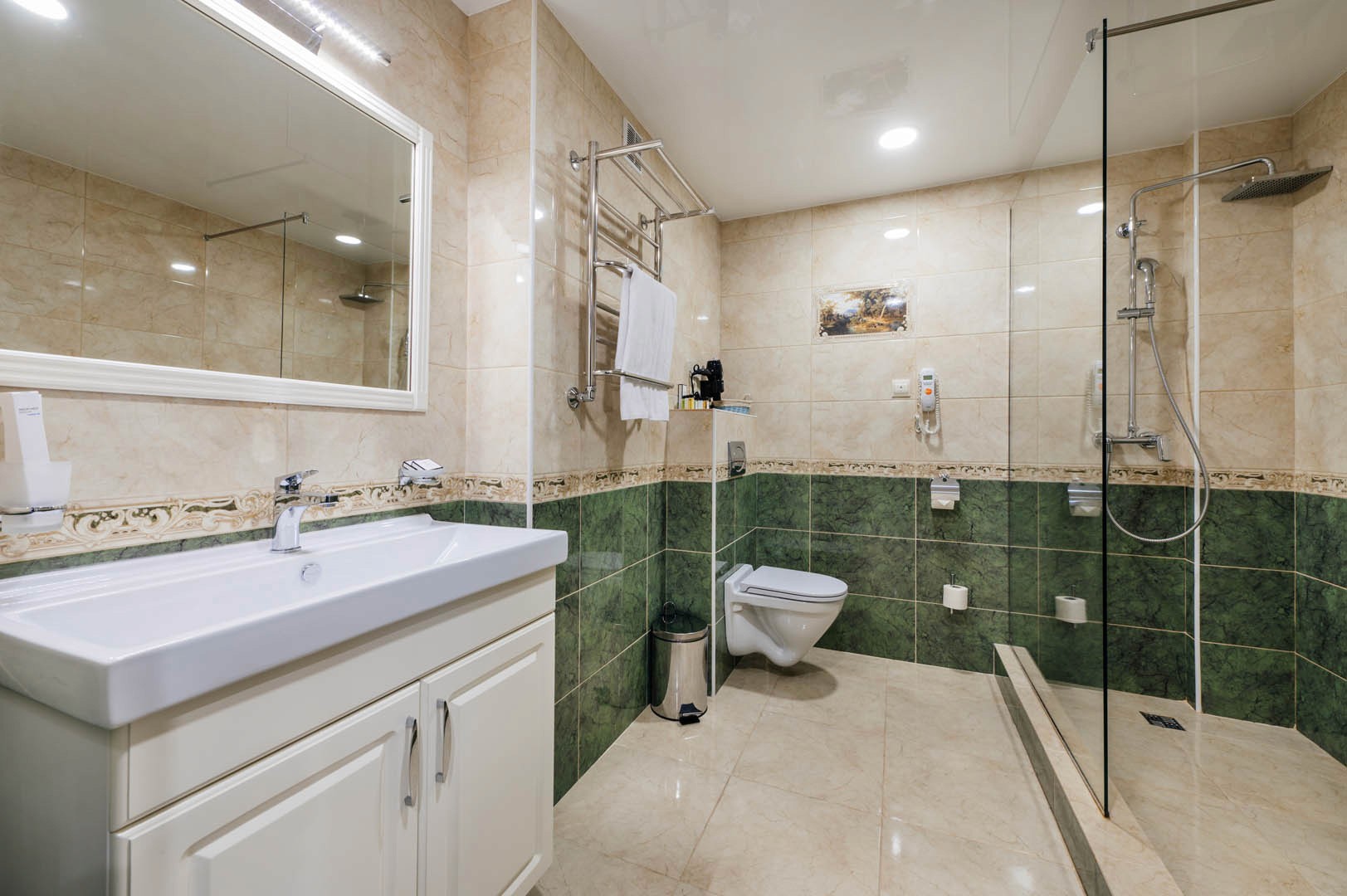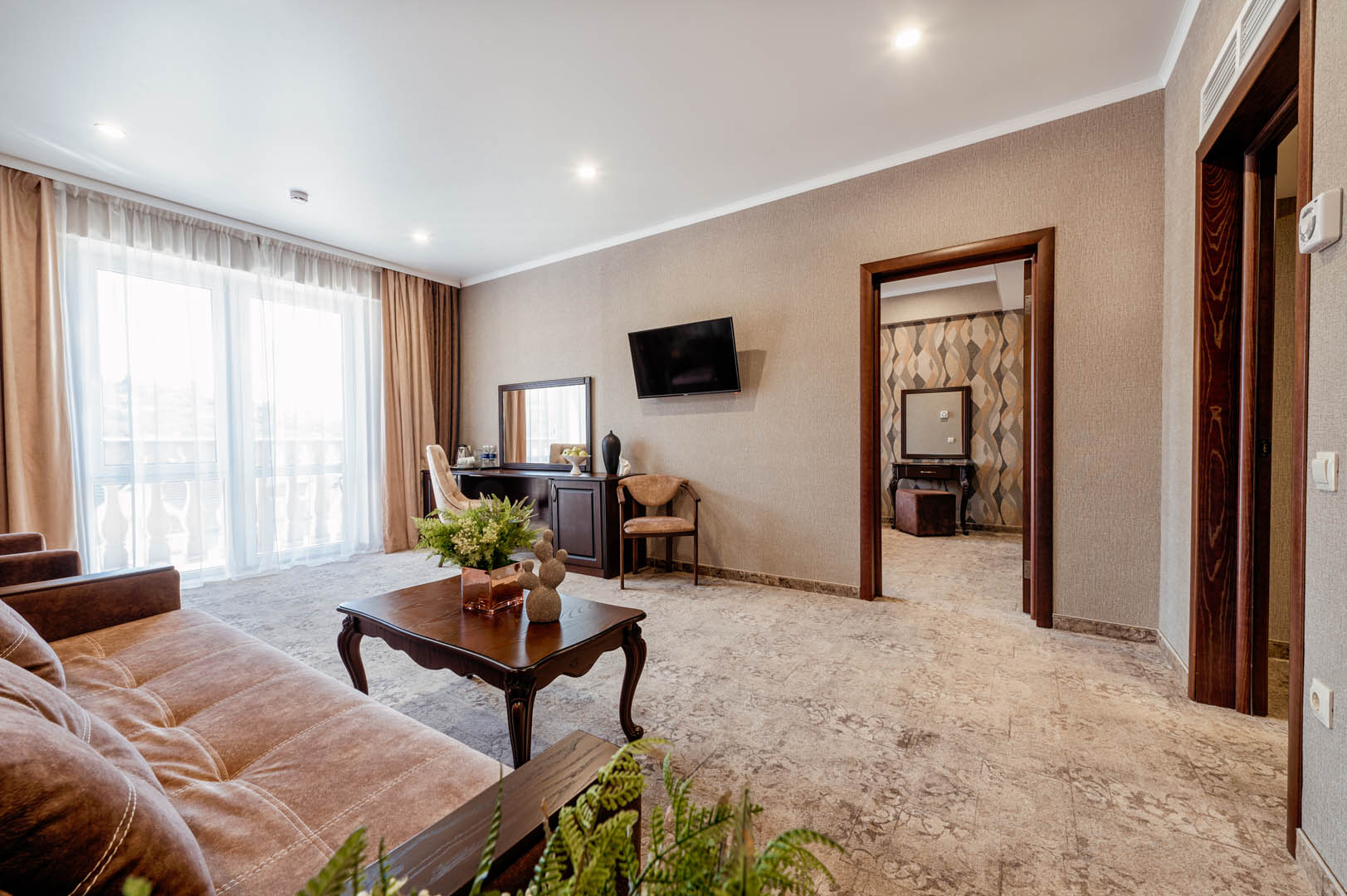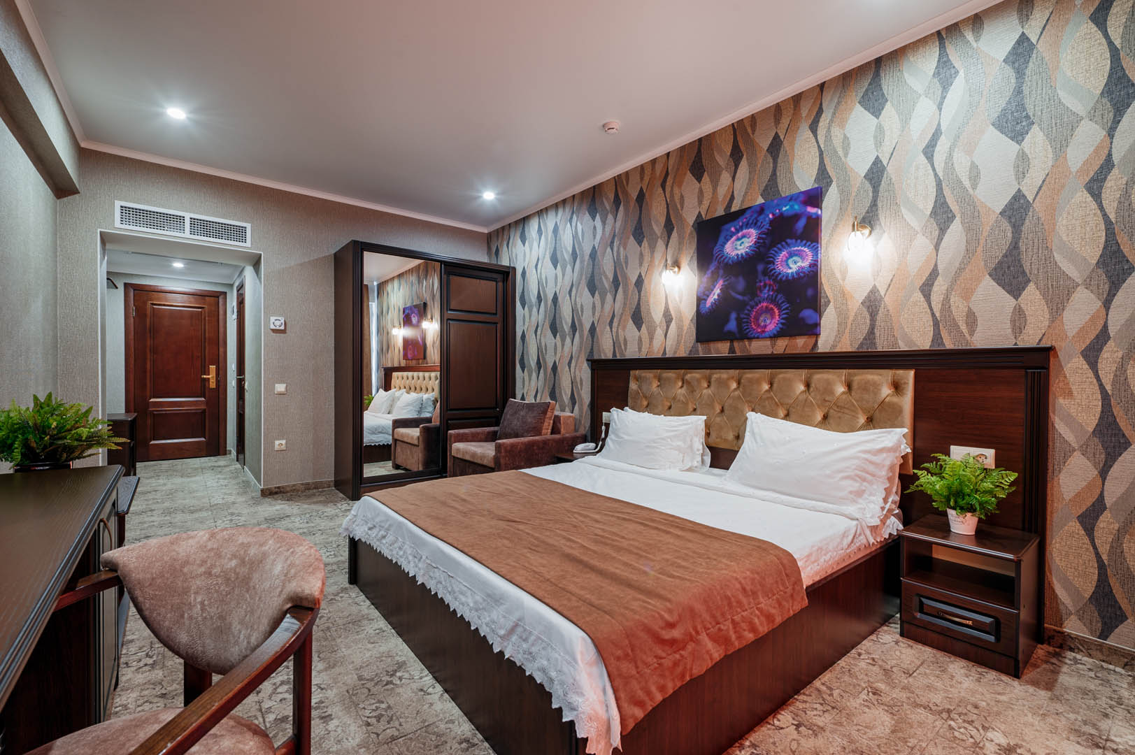 В просторных стильных номерах есть балкон, кондиционер, сейф и утюг.