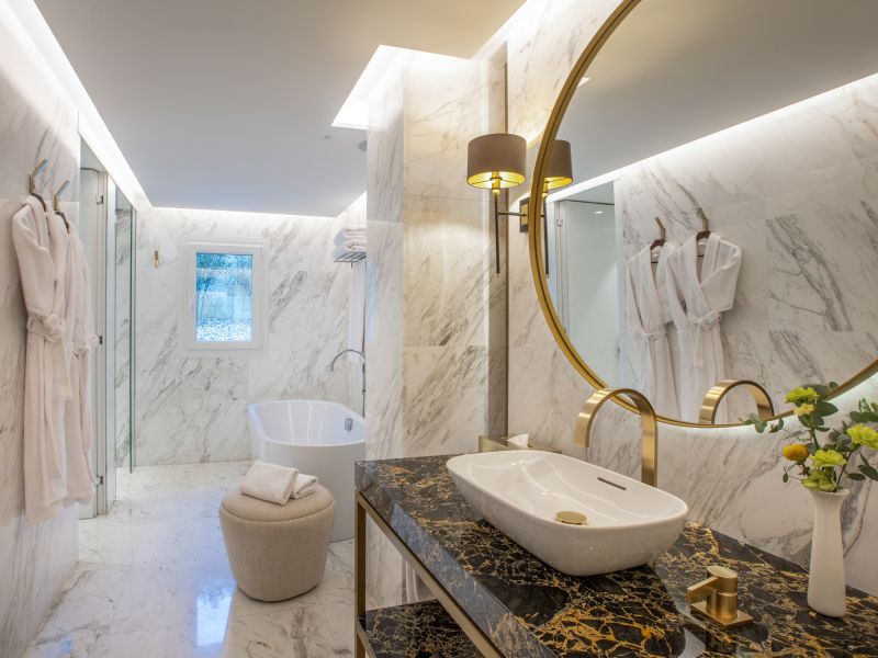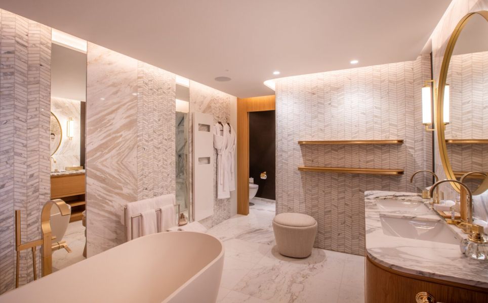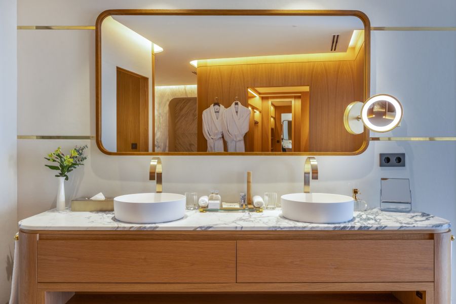 В номерах: мини-бар, банные принадлежности, халат, тапочки, телефон, зеркало для макияжа, музыкальная система через Bluetooth, ночное освещение с датчиками, шторы с автоматическим открытием и закрытием, панель устойчивого развития (sustainability panel), услуга персонального ассистента.