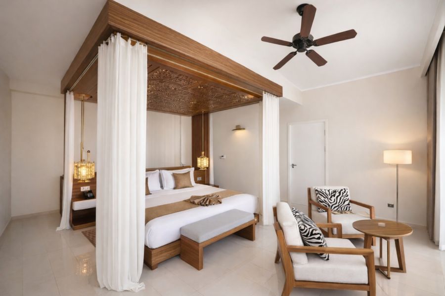 В номерах: кондиционер, потолочный вентилятор, аромадиффузор, смарт-тв, Wi-Fi, сейф, мини-бар (ежедневное пополнение), набор для приготовления чая/кофе, банные принадлежности, зеркало для макияжа, халат, тапочки.