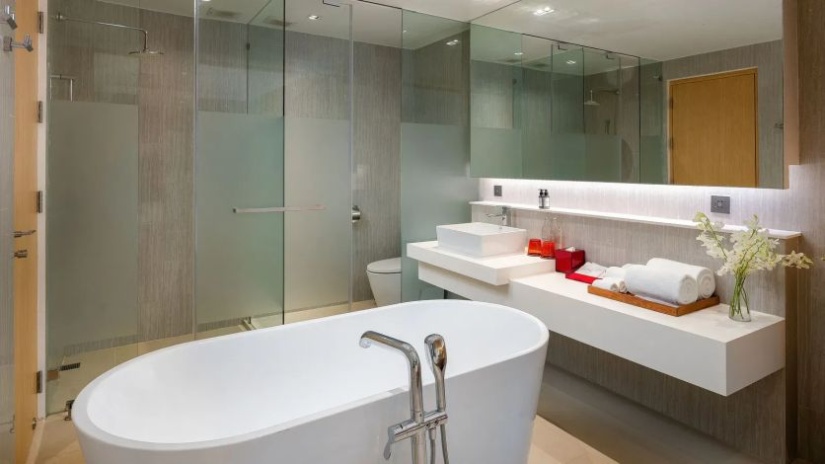 В номерах: Wi-Fi, кондиционер, сейф, мини-холодильник, электрический чайник, фен, тапочки, халат, телевизор.