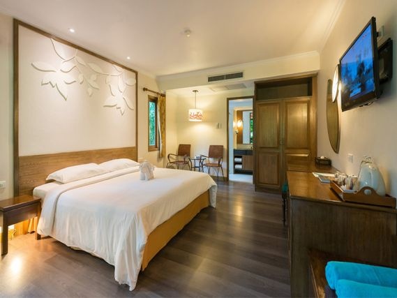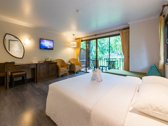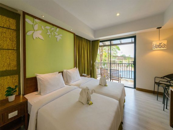 The Leaf on The Sands by Katathani — это трёхзвёздочный курорт, расположенный в центре Кхао Лака, Таиланд. Отель предлагает комфортный отдых в окружении тропической природы, всего в 5 минутах ходьбы от пляжа Нанг Тхонг.