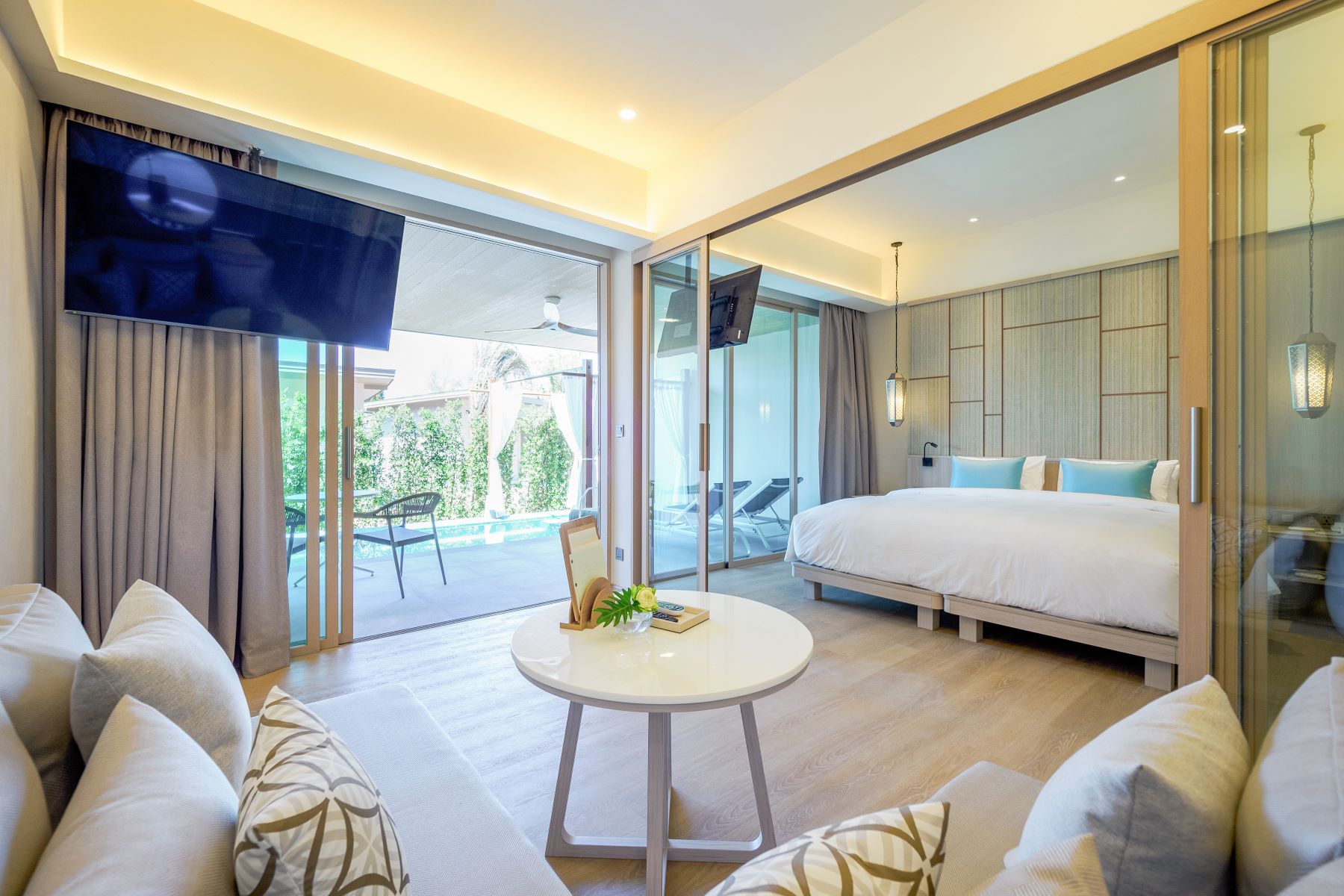 В номерах Villa: кондиционер, Bluetooth-колонка, обеденный стол и стулья в саду, мини-бар, фен, халаты, тапочки, телефон с международной связью (IDD), сейф, бесплатный Wi-Fi, зонт, услуги прачечной и химчистки, порты USB и универсальные розетки.