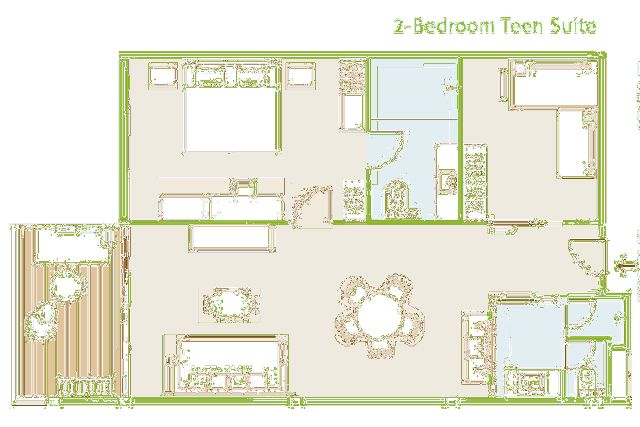 - 8 номеров 2-Bedroom Teen Suite (80 м², макс. 2+3 до 18 лет).