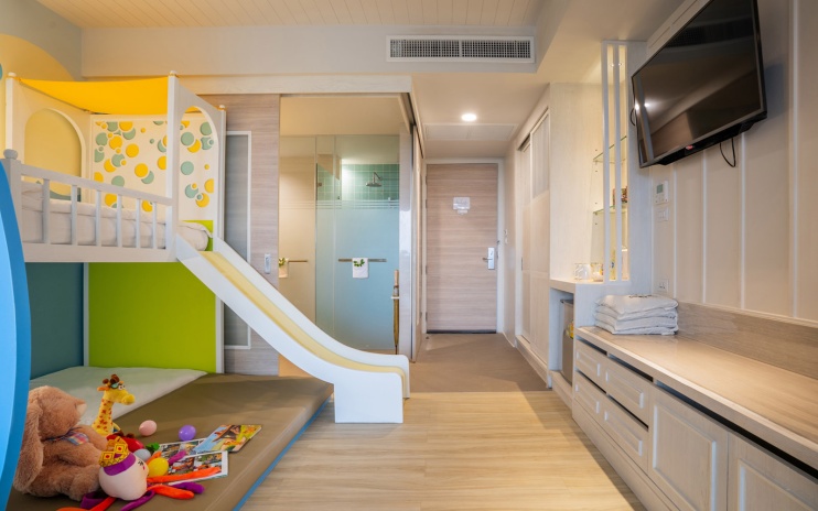 - 28 номеров Family Slide Room (45 м², макс. 2+2).