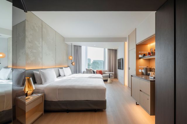 Двухкомнатный люкс, специально разработанный для проживания семьи из 2 взрослых и 2 детей: двуспальная кровать king-size и двухъярусная кровать, ванная комната с ванной и душем, балкон, вид на сад и город, игрушки и принадлежности для детей (игры, детские халаты, тапочки), свежие фрукты ежедневно, персональный медиаплеер и Bluetooth-колонка BOSE®;