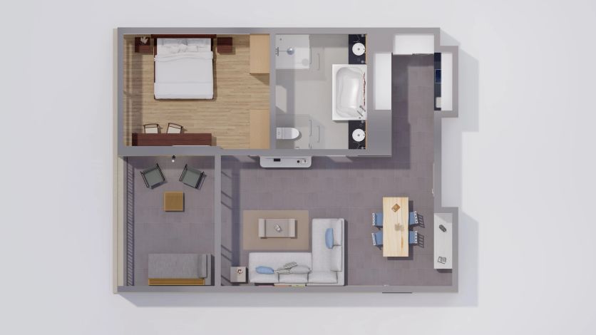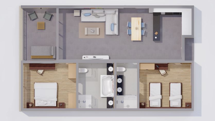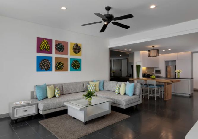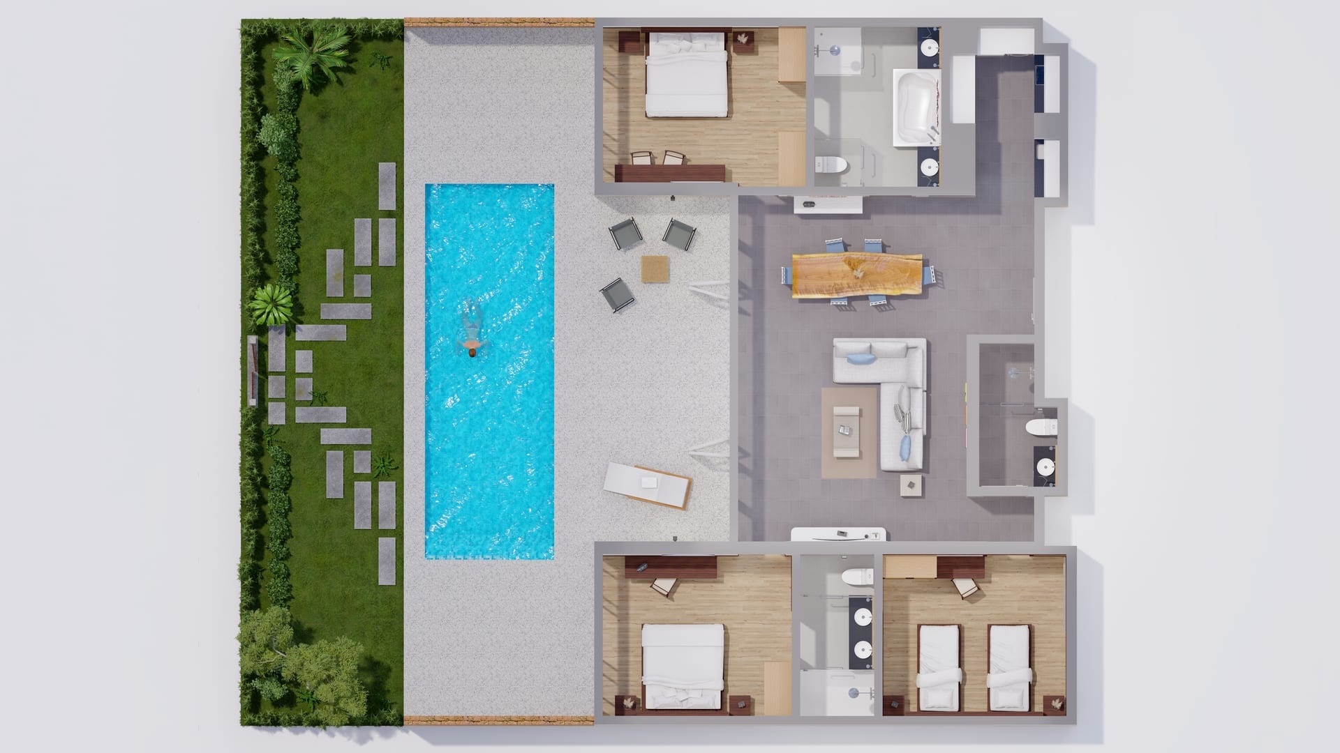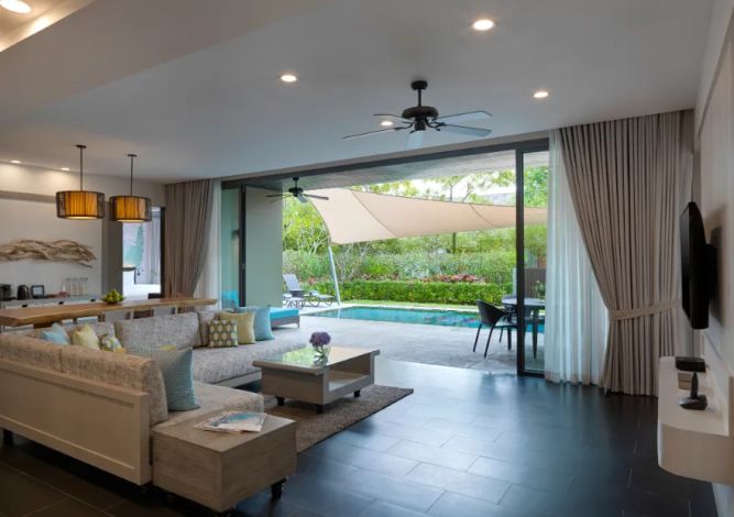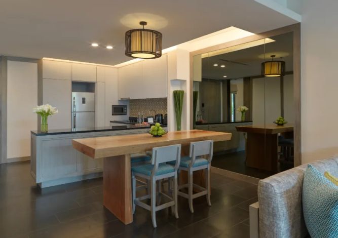 Южная часть включает 70 номеров категории Suite (One и Two Bedroom), а также Two Bedroom Pool Suite с бассейном на первом этаже, и 30 номеров Pavilion (One и Two Bedroom). Северная часть представлена исключительно виллами.