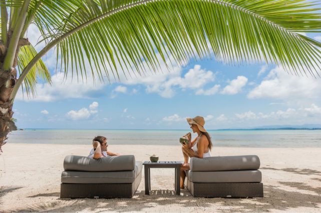 В номерах: Wi-Fi, телевизор со спутниковыми каналами, кондиционер (инд. контроль), письменный стол, USB разъёмы, телефон с голосовой почтой, сейф, чайник, набор для приготовления чая/кофе, кофемашина в номерах suite и в виллах, мини-бар, питьевая бутилированная вода, банные принадлежности, фен, зонт, халат, тапочки, утюг и гладильная доска.