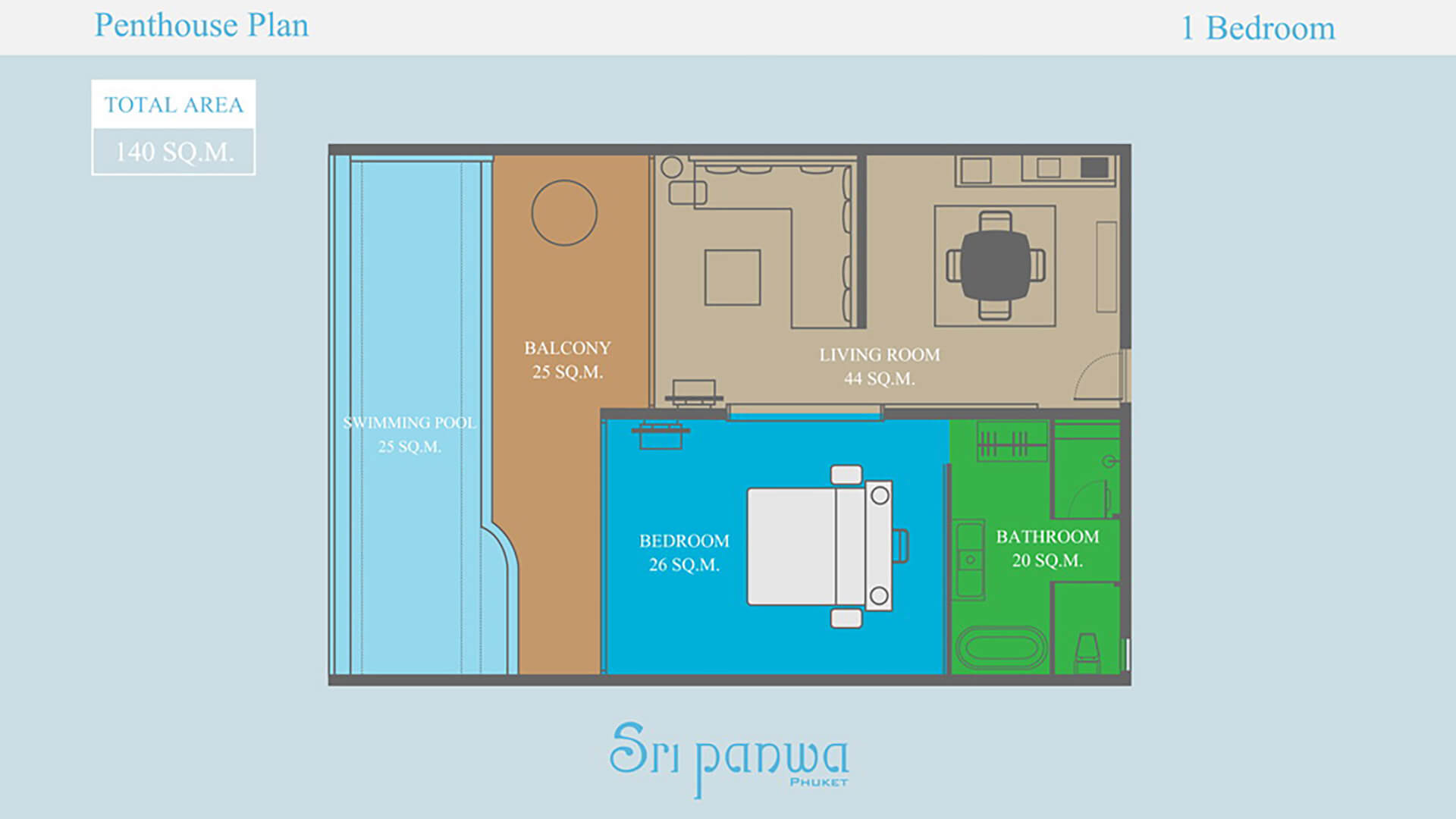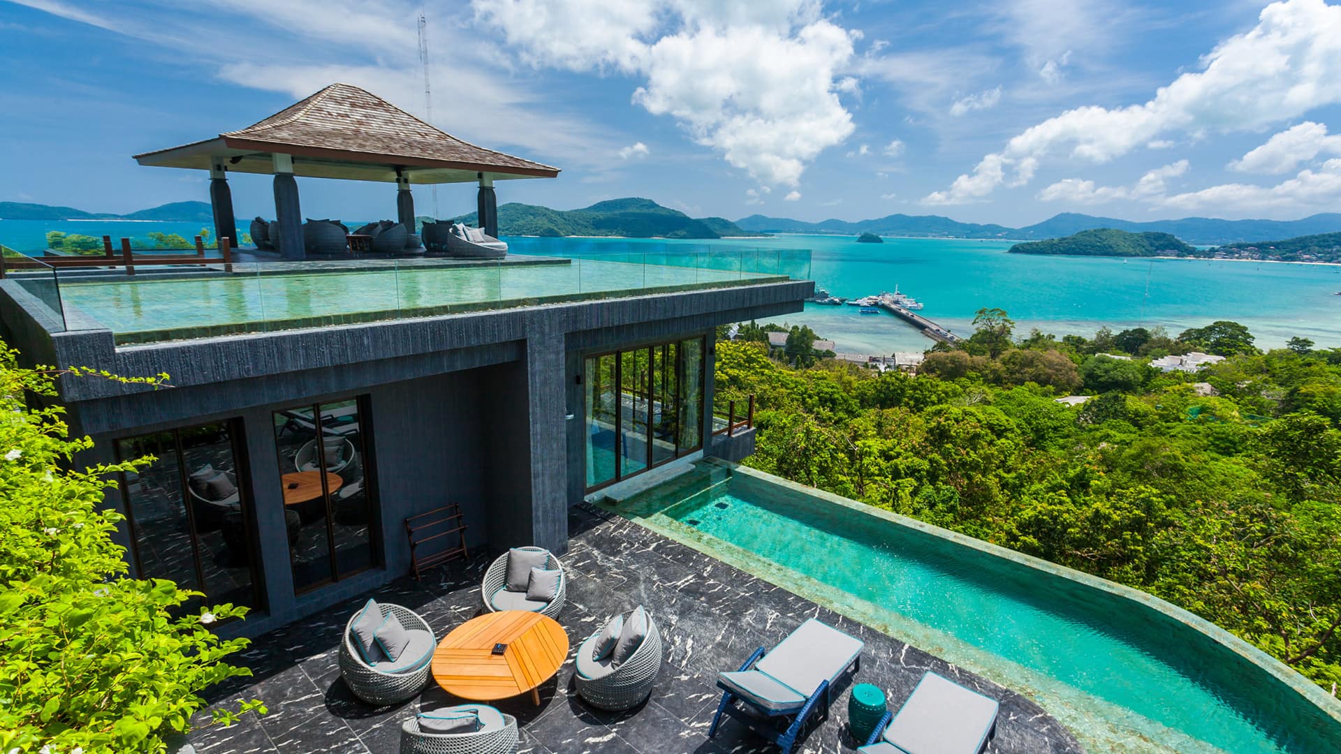 Расположена на возвышенности мыса Панва, спальня с двуспальной кроватью, гостиная, ванная комната, современный бар и просторная солнечная терраса с зоной для отдыха на открытом воздухе, персональный бассейн, панорамный вид на Андаманское море (на 360°);