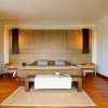 Спальня с двуспальной кровать, гостиная комната, ванная комната, беседка на террасе, душ под открытым небом, персональный бассейн, вид на сад;