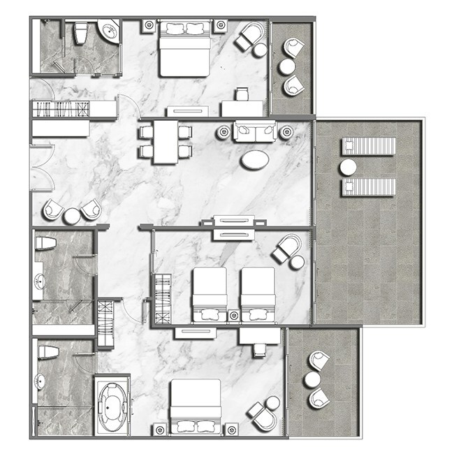 В каждой спальне возможно размещение одного дополнительного спального места.