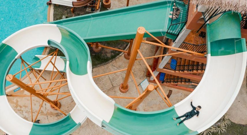 На территории — четыре просторных бассейна, включая бассейн с водными горками и баром у воды, уютные зоны для отдыха и купания, а также контактный зоопарк Animal Village, где гости могут познакомиться с дружелюбными животными — кроликами, козами и даже 40-летней черепахой.