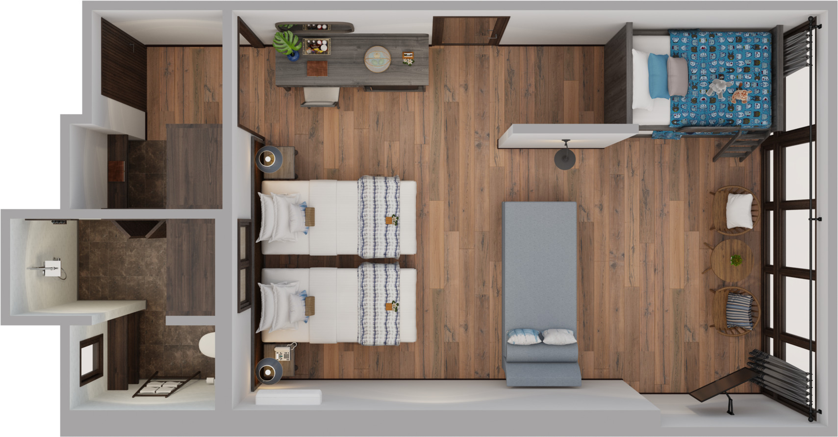 4 номера Family Suite (38 м², макс. 2+2).