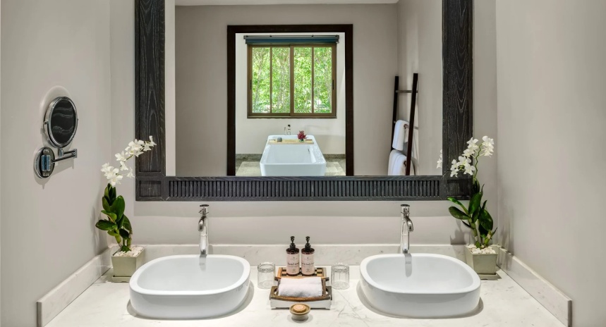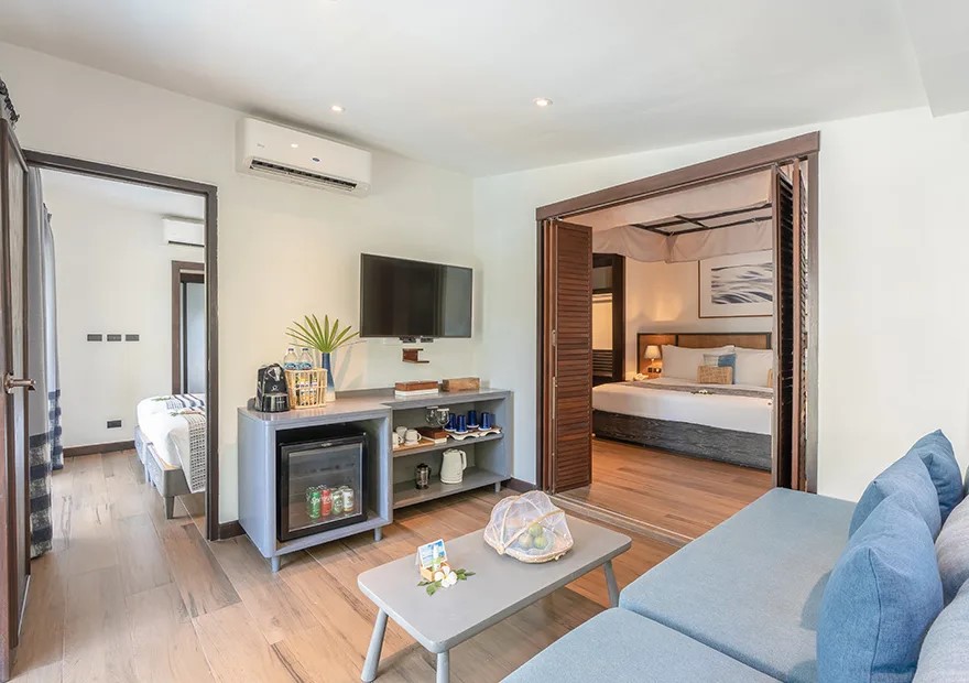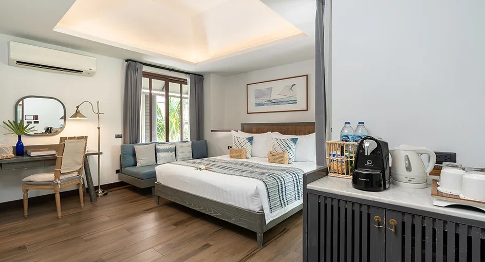 В номере: Wi-Fi, кондиционер сейф, телевизор со спутниковыми каналами, телефон, туалетно-косметические принадлежности, косметическое зеркало, фен, весы, электрочайник, кофемашина (в большей части вилл), бутилированная вода, мини-холодильник, набор для приготовления чая и кофе, пляжная сумка и сандалии (на виллах), халаты и тапочки (на виллах), гладильная доска и утюг (на виллах).