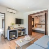 Номер на 1 этаже главного здания: 1 двуспальная (8 номеров) или 2 односпальные кровати (2 номера), кушетка, ванная комната с душем, меблированная терраса с ванной-джакузи и душем на свежем воздухе, шезлонги, зонт, небольшой частный бассейн, вид во внутренний дворик;