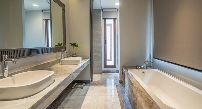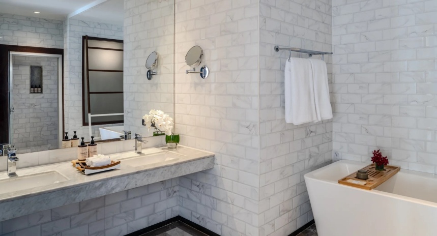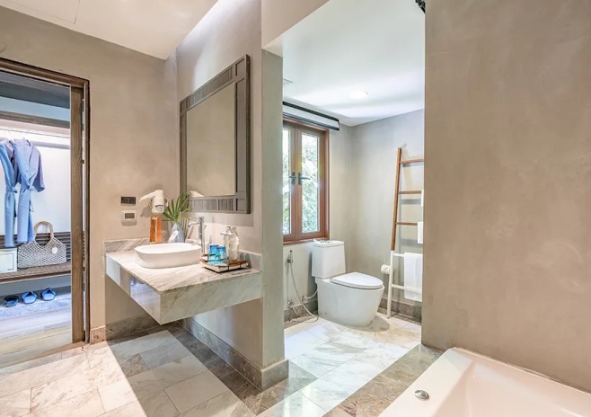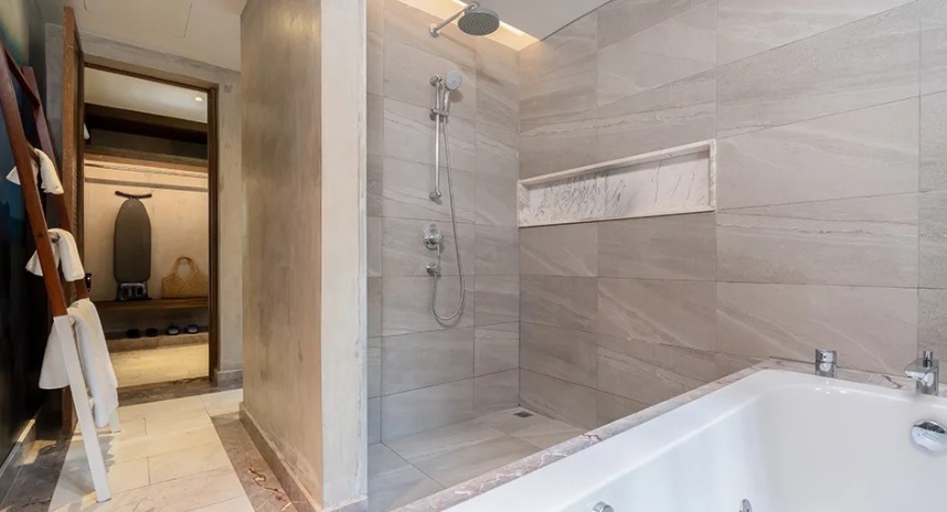 *в части номеров, сьютов и на виллах гардеробная комната/ шкаф-гардероб располагается в зоне ванной комнаты.