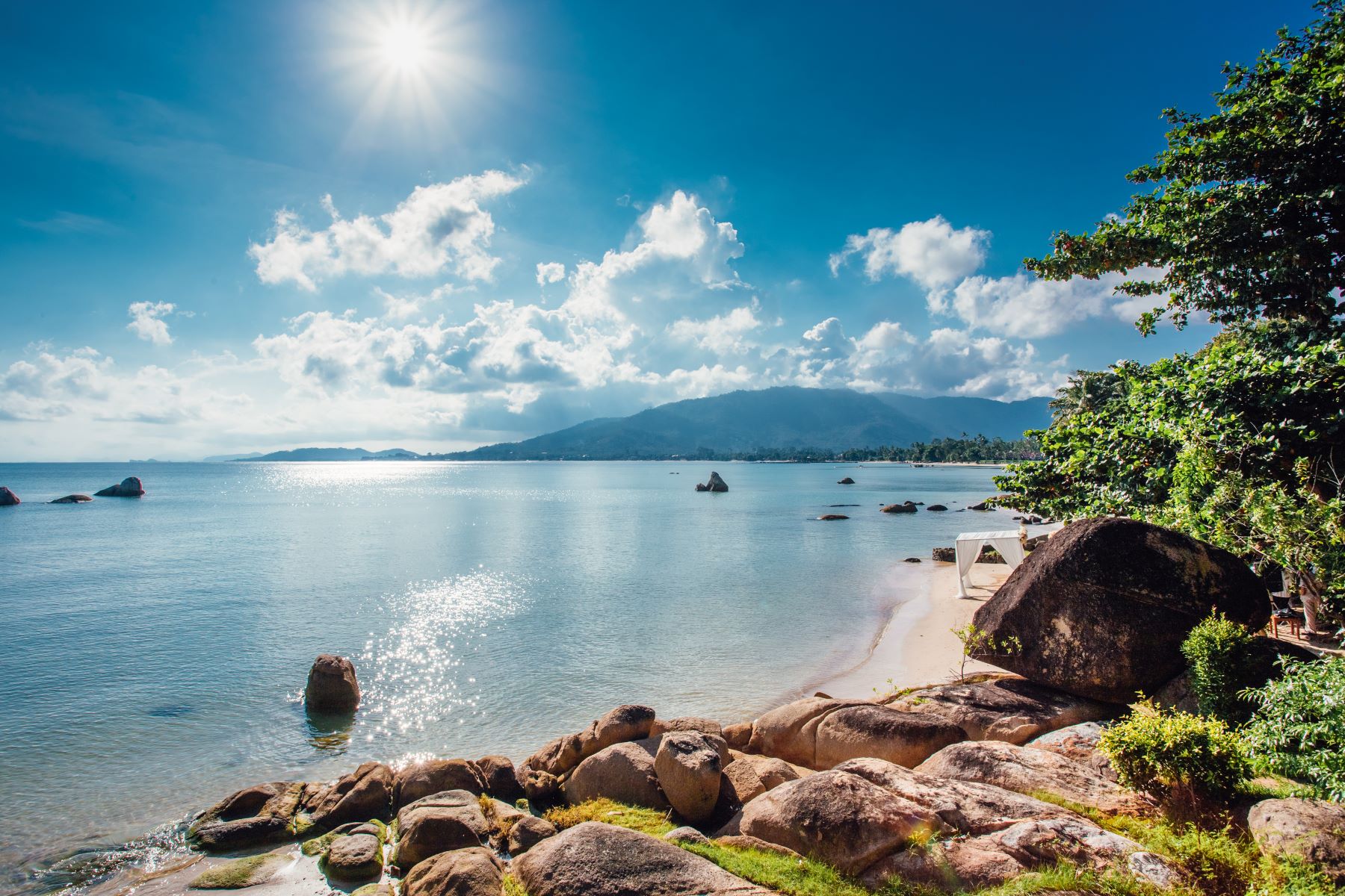 Отдельная вилла с 2-мя спальнями и межкомнатными дверьми: 1 двуспальная и 2 односпальные кровати, отдельная гостиная, 2 ванные комнаты с ванной и душевой кабиной, меблированная терраса (116 м²) с павильоном, обеденной зоной и частным бассейном, вид на море; идеально подойдет для семьи или компании друзей.