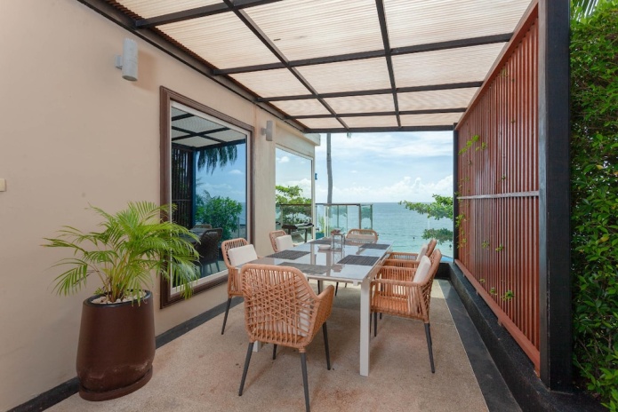 Люкс «Empire» с 2-мя спальнями: в главной спальне – двуспальная кровать, во второй спальне –  3 односпальные кровати, 2 ванные комнаты; просторная гостиная с обеденной зоной на 6 персон и оборудованной кухней; просторная меблированная терраса с зонтом, шезлонгами и обеденной зоной на открытом воздухе под навесом, собственный бассейн; панорамный вид на Сиамский залив;