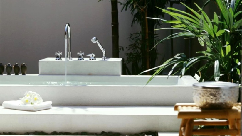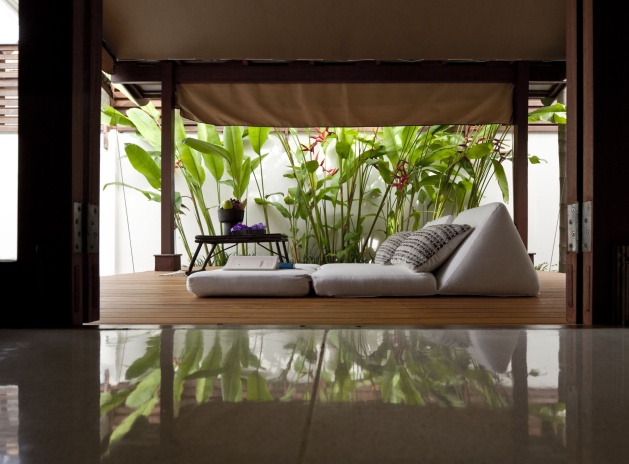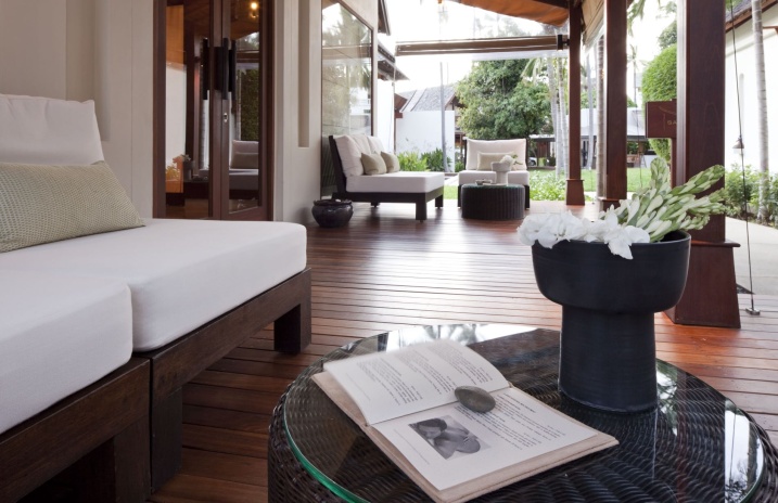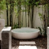 Отдельная вилла: спальня (25 м²) с 1-й двуспальной кроватью и ванной комнатой (13 м²) с душем и ванной на свежем воздухе, отдельная гостиная (12 м²), патио с бассейном (15 м²), беседкой для отдыха с кушеткой, террасой для загара с шезлонгами, обеденной зоной на 4 персоны; частный сад, вид на сад; план номера;