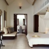 Номер состоит из 2-х расположенных рядом двухуровневых вилл 1 Bedroom Duplex Pool Villa Suite, соединенных проходом на террасе; верхний этаж: 2 спальни (21 м²) с двуспальной кроватью, 2 ванные комнаты (11м²) с душем и выходом на собственные балконы (13,5 м²) с кушеткой и ванной на свежем воздухе; нижний этаж: 2 отдельные гостиные (20 м²) с диваном, 2 ванные комнаты (15 м²) с душем и ванной на свежем воздухе, 2 крытые террасы с кушеткой (16 м²), 2 бассейна (17 м²), 2 террасы для загара с шезлонгами, 2 беседки с кушеткой, 2 обеденные зоны на 4 персоны, 2 частных сада; вид на сады; план номера/ нижний этаж, план номера/ верхний этаж.