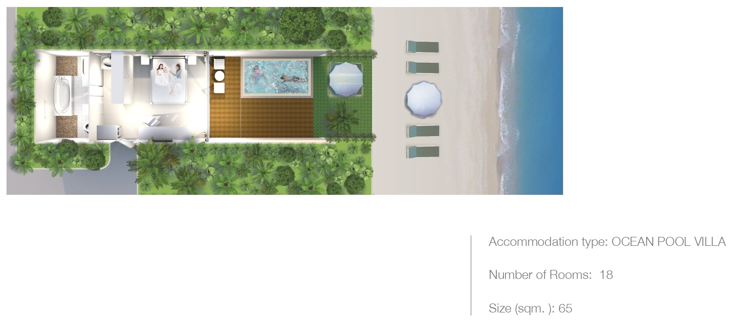 18 номеров Ocean Pool Villa (65 м², макс. 3 чел.).