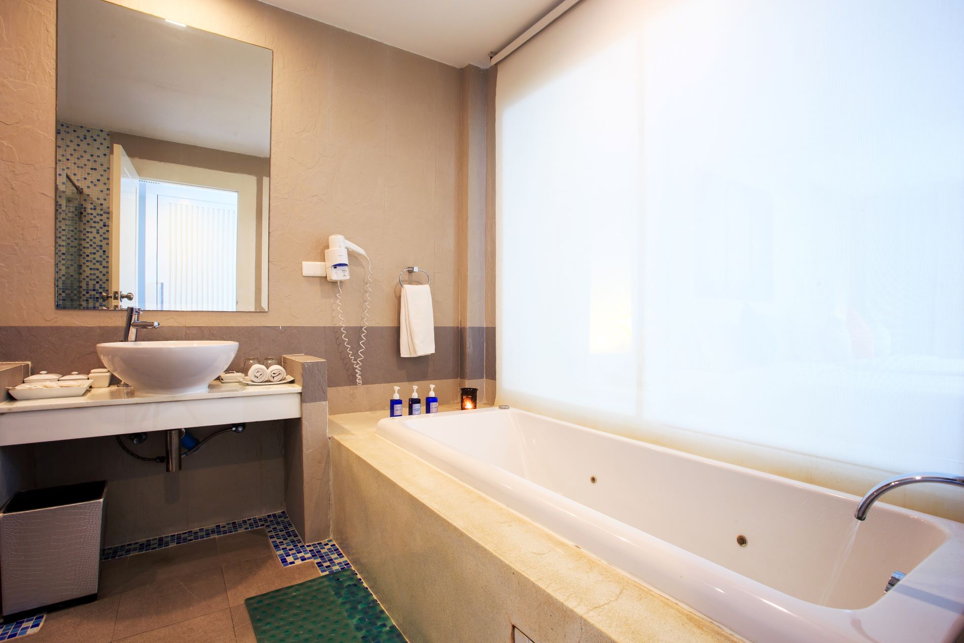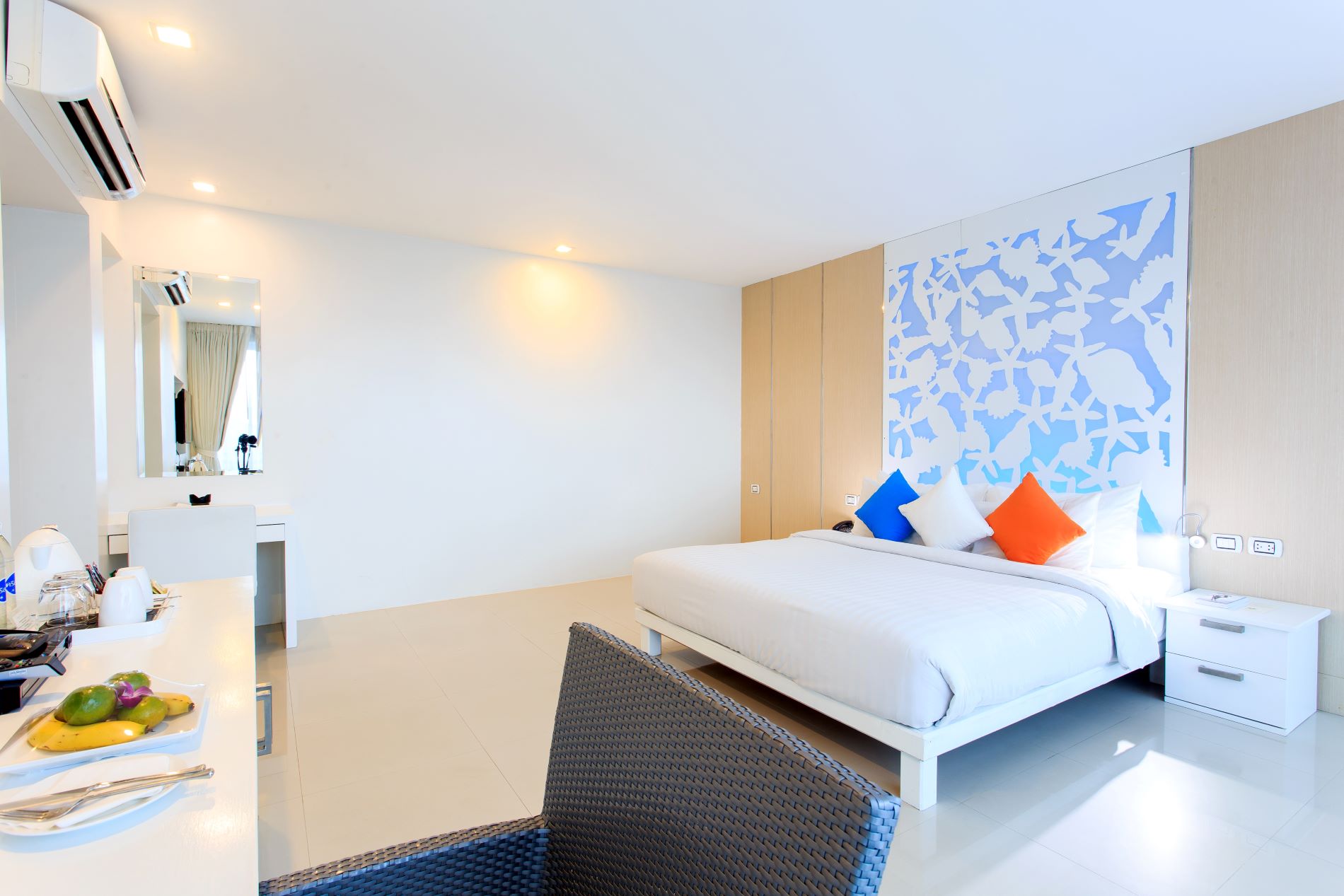 В номерах: Wi-Fi, кондиционер, телефон, Smart TV, сейф, рабочий стол, халаты и тапочки, сандалии для пляжа, пляжная сумка, банные принадлежности, фен, мини-бар (платно), бесплатная бутилированная вода, набор для приготовления чая и кофе, электрический чайник, кофемашина Nespresso (в некоторых типах размещения), зонтик, фонарик.
