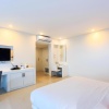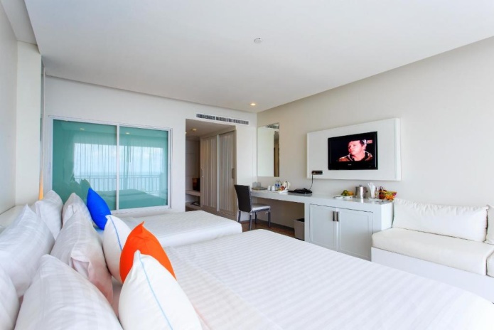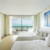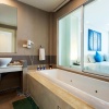 Номера на 2-3 этажах трехэтажного корпуса: 1 двуспальная кровать king size/ 1 двуспальная кровать king size + 1 односпальная кровать/ 2 кровати queen size; отдельная ванная комната с ванной и душевой кабиной (отделена стеной с непрозрачным окном), меблированный балкон (9 м²), вид на море; план номера;