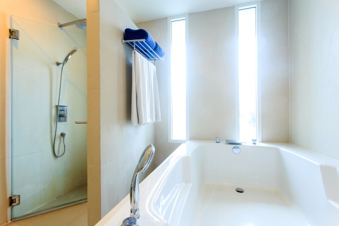Номера на 2 этаже трехэтажного корпуса: 1 двуспальная кровать king size или 2 односпальные кровати, отдельная ванная комната с ванной и душевой кабиной, небольшой балкон (4 м²), без вида/ на близлежащие здания;