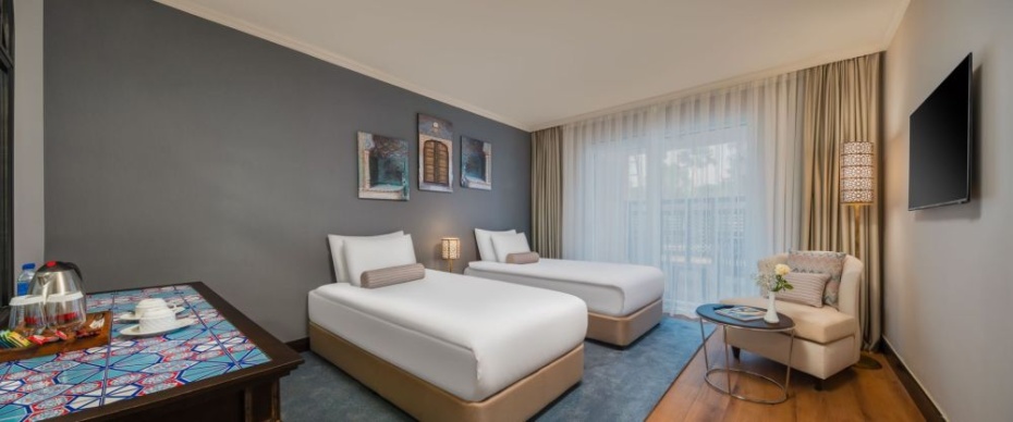 Две односпальные кровати, ванная комната с ванной или с душем, балкон, виртуальный тур по номеру;