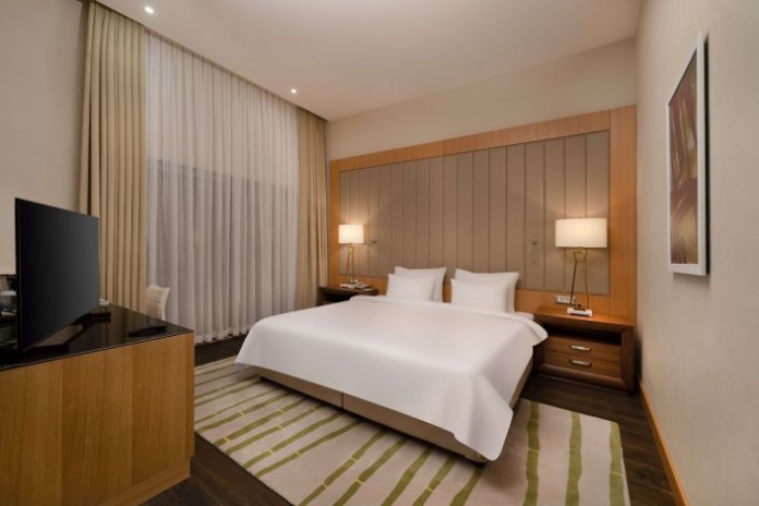 В номерах:  письменный стол, набор для приготовления чай и кофемашина nespresso, центральная система кондиционирования, телефон, сейф, телевизор, Wi-Fi, зеркало для макияжа, фен, банные принадлежности, тапочки, халат, мини-бар.