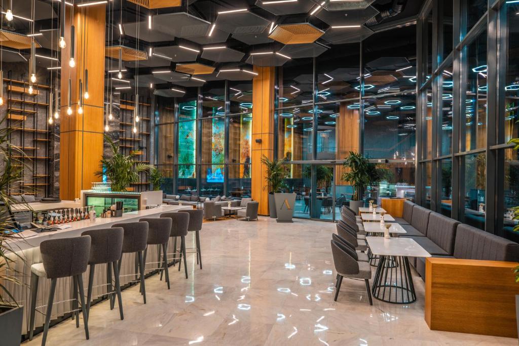 В номерах: ежедневное пополнение мини-бара (бутилированная вода, банка Coca-Cola, банка Fanta, банка Sprite, банка пива Efes, сода, фруктовый сок), набор для приготовления чая и кофе, банные принадлежности (шампунь, кондиционер для волос, гель для душа, лосьон для тела, мыло, душевая шапочка, пачка салфеток, ватные палочки и ватные диски для снятия макияжа), фен, сейф, телевизор со спутниковыми каналами, музыкальные каналы (транслируются на телевизоре), телефон, меню подушек (3 вида), кондиционер.