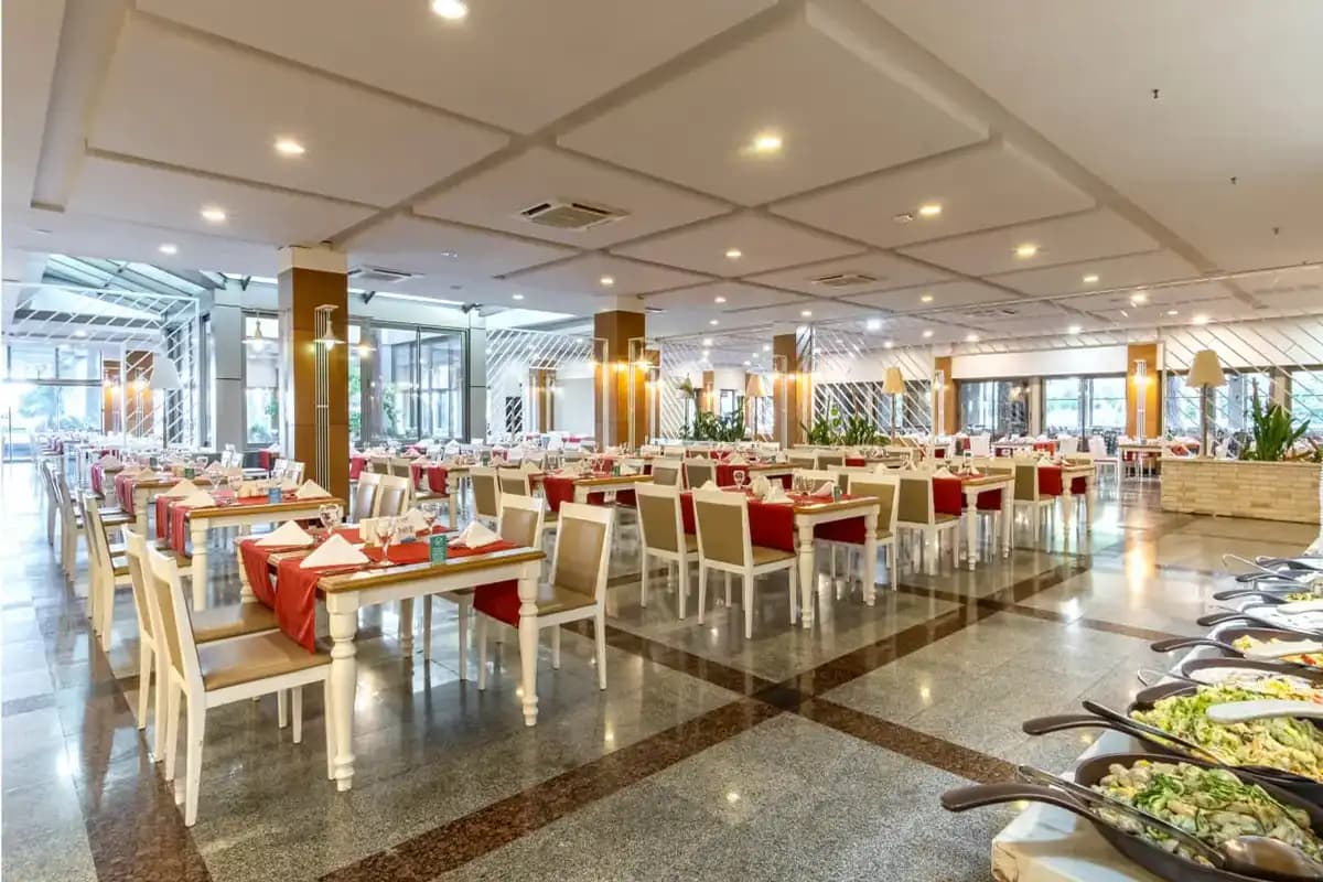 • основной ресторан Vista (международная и турецкая кухни, «шведский стол»), вместимость: 700 мест внутри и 200 снаружи;