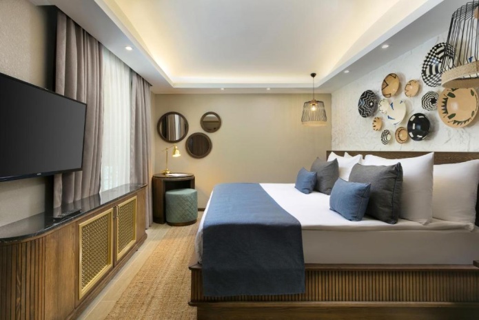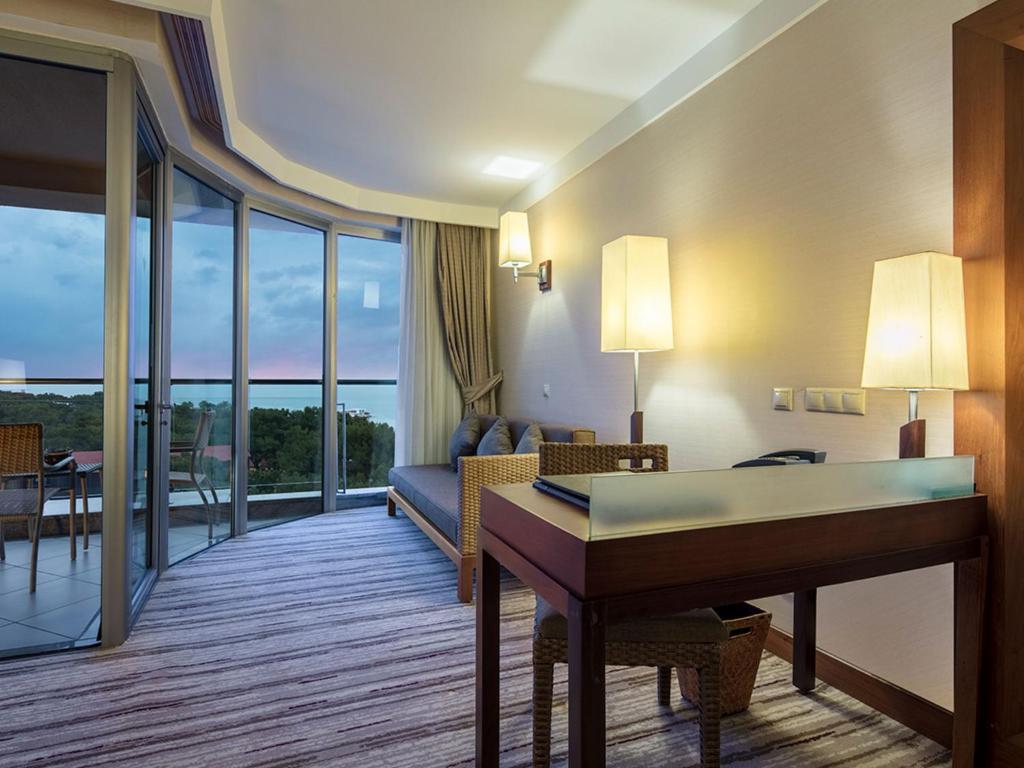 К услугам гостей — просторные номера различных категорий, включая стандартные, семейные и виллы с частными бассейнами. Для детей предусмотрен большой развлекательный комплекс Rixy Kids Club с игровой зоной, детским аквапарком и разнообразными активностями по возрастам. Взрослым доступен современный фитнес-центр World Class, Anjana Spa с хамамом, массажами и уходовыми процедурами, а также обширная спортивная инфраструктура: теннисные корты, футбольное поле, площадки для групповых тренировок.