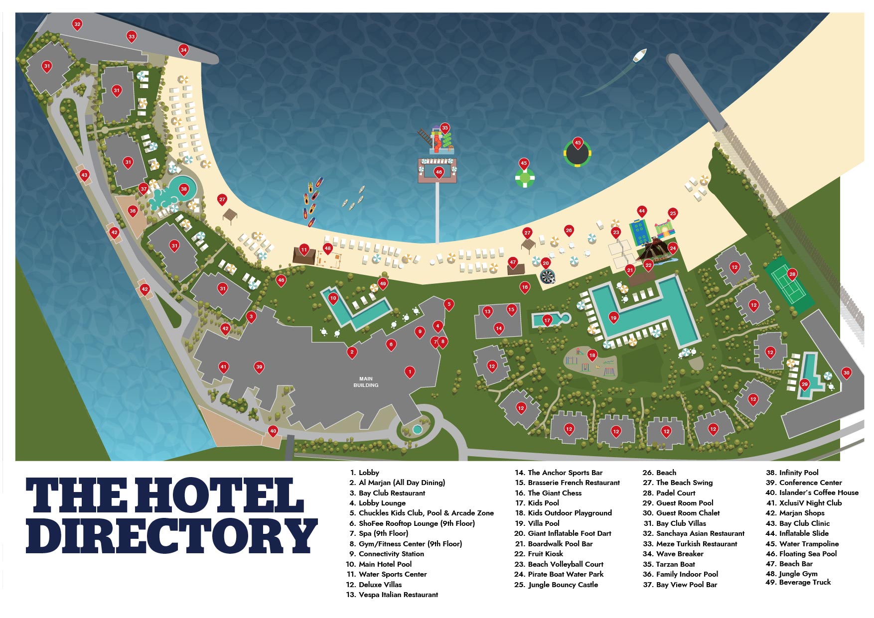 DoubleTree By Hilton Resort & SPA Marjan Island расположен на частном пляже протяженностью 650 метров на острове Маржан, предлагает гостям 11 ресторанов и баров, семь бассейнов, включая крытый, а также площадки для падела. Для расслабления и восстановления доступен спа-центр с широким спектром услуг. Семьям с детьми предоставляется Chuckles Kids Club, оснащенный уличной игровой площадкой, аква-зоной «Пиратский корабль» и разнообразной программой ежедневных активностей.