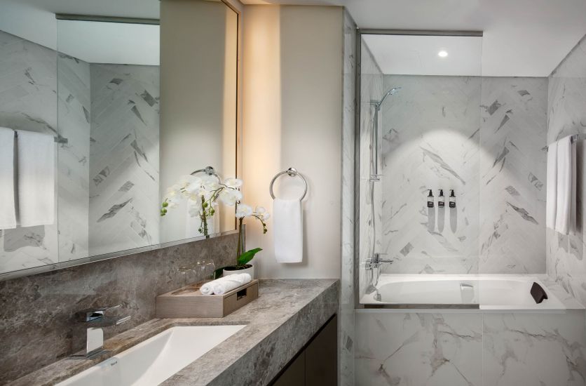 В номерах: Wi-Fi, стиральная машинка, сушильная машинка, фен, письменный стол, кондиционер, смарт-ТВ, сейф, телефон, холодильник, гладильная доска, банные принадлежности, бутилированная питьевая вода, халат, тапочки, набор для приготовления чая/кофе.