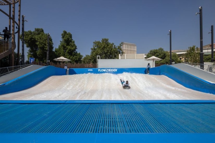• аквапарк: волновой бассейн «Пляж», аттракцион «ленивая река» – Lazy River 10 000 м², аквапарк, в том числе 20 м башня с горкой, см.водные аттракционы, аттракцион для сёрфинга Flow Rider Triple, который стал первым в своем роде на Ближнем Востоке (этот захватывающий искусственный волновой симулятор позволяет посетителям кататься на доске, имитируя волны океана. Отличается от других симуляторов тем, что предлагает три различных потока воды, что позволяет нескольким людям одновременно кататься на волнах), 2 «плавающих» корта для игры в падел-теннис (площадки размещены на специальных платформах на воде);