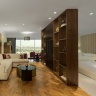Спальня с двуспальной кроватью king-size, отдельная гостиная комната с диваном и обеденным столом, ванная комната с ванной и душем, окна от пола до потолка;